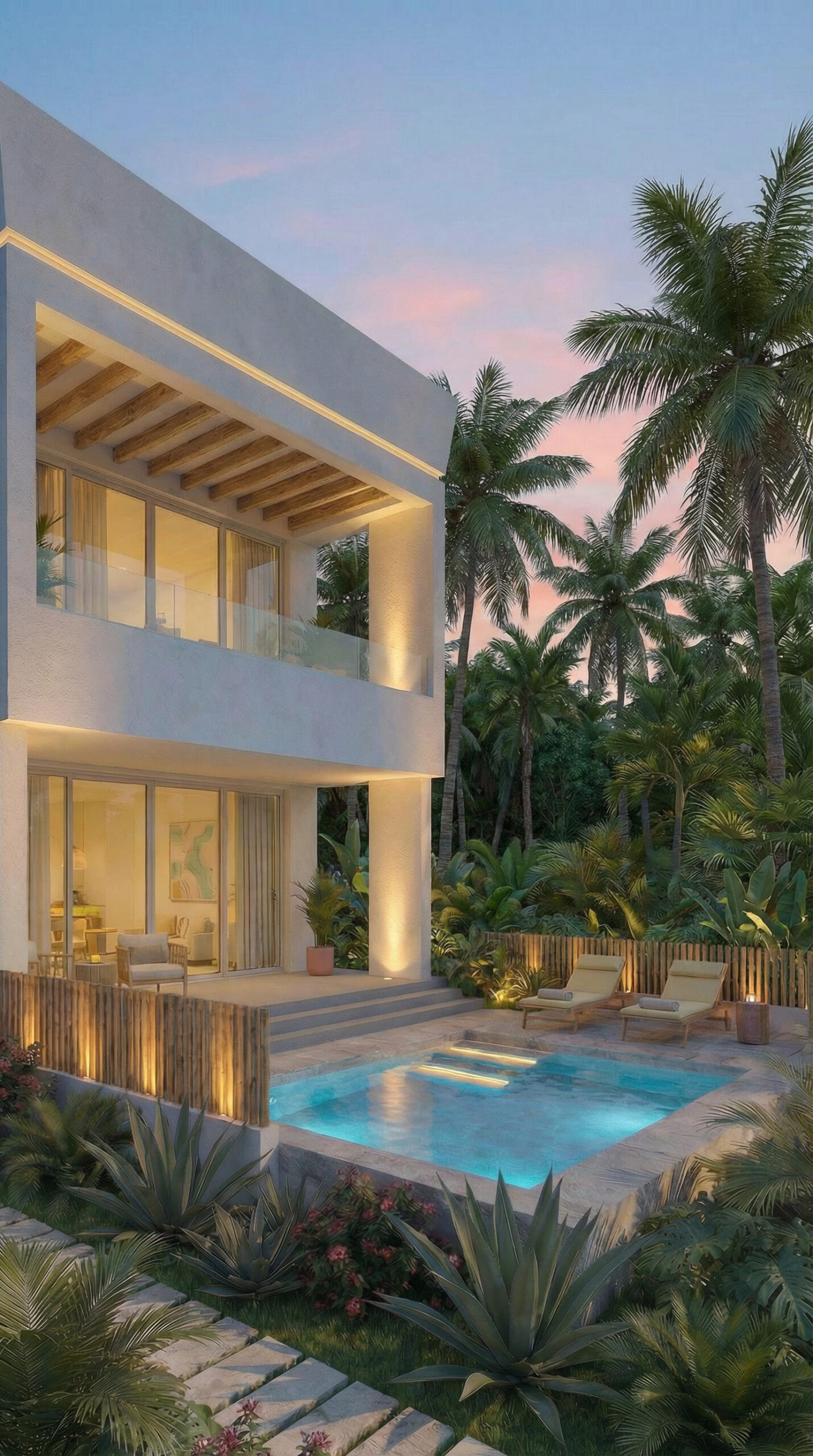 KAYA embraces a tropical minimalist aesthetic, where clean lines meet natural textures. Microcement, rope accents, and straw elements blend seamlessly with open spaces, creating a warm, sensory environment that harmonizes indoor and outdoor living. The style is understated yet luxurious, focusing on simplicity, light, and the natural beauty of the surroundings.
